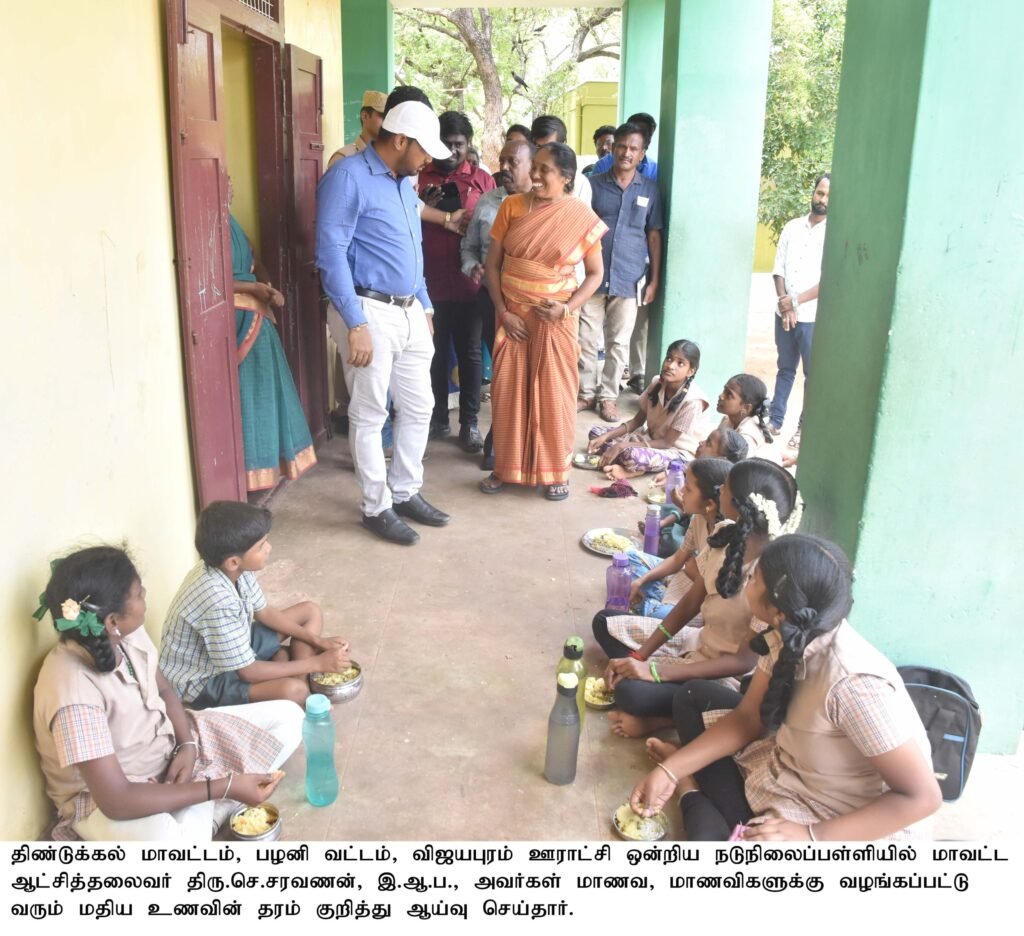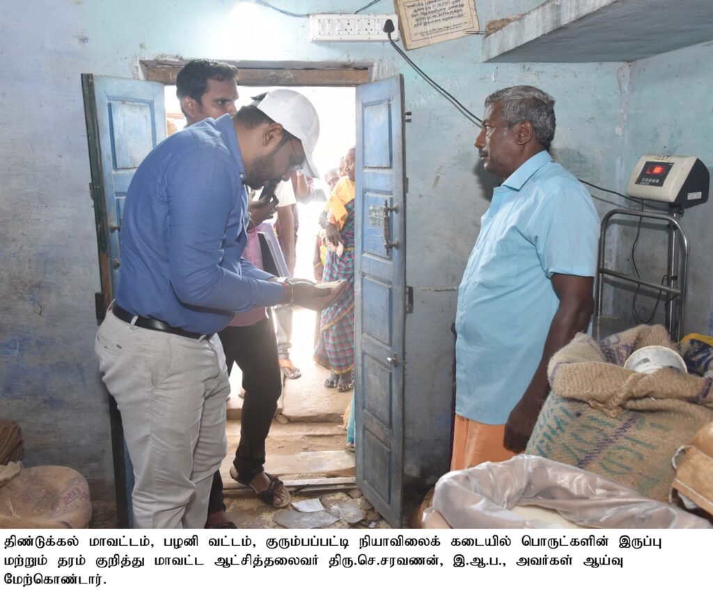 பழனி வட்டம், பாலசமுத்திரம் ஊராட்சியில் ரூ.16.88 இலட்சம் மதிப்பீட்டில் ஊராட்சி ஒன்றிய தொடக்கப்பள்ளியில் கட்டப்பட்டு வரும் வகுப்பறை கட்டடத்தை பார்வையிட்டதுடன் மாணவ, மாணவிகளுக்கு வழங்கப்பட்டு வரும் மதிய உணவினை சாப்பிட்டு பார்த்து அதன் தரம் குறித்து ஆய்வு செய்தார். பின்னர் குறும்பபட்டியில் நியாவிலைக் கடையினை பார்வையிட்டு இருப்பு பொருட்களின் தரம் குறித்து ஆய்வு செய்தார்.
