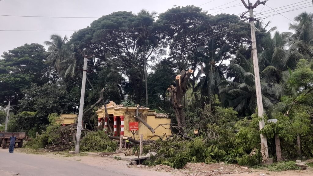 முள்ளிப் பள்ளம் கிராமத்தில் கும்பாபிஷேகம் பணிகளை தொடங்க இடையூறாக இருந்த மரம் அகற்றம் அதிகாரிகள் நடவடிக்கை
