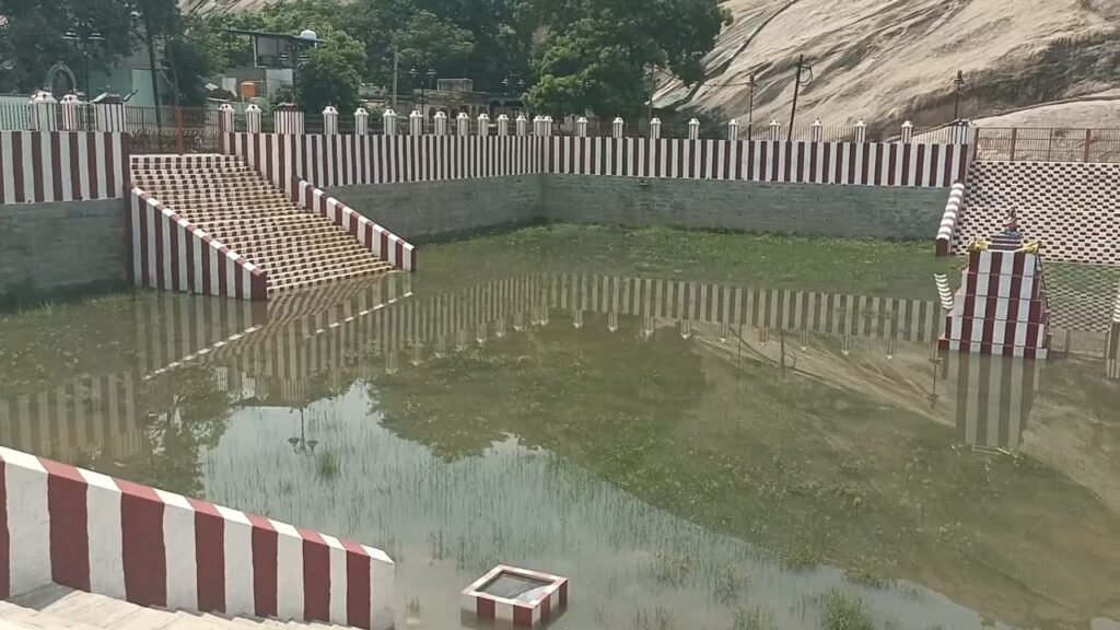 இந்த நிலையில், கடந்த சில நாட்களாக தொடர்ந்து பெய்து வரக்கூடிய மழையால் மலையில் இருந்து குற்றால அருவி போல பெருக்கெடுத்து மழை தண்ணீரானது லெட்சுமி தீர்த்த குளத்தில் விழுந்து நிரம்பி வருகிறது. தொடர்ந்து, பெய்து வரும் கனமழையால் ஒரு சில நாளில் தீர்த்த குளம் முழுவதுமாக நிரம்பி விடும் என்று எதிர்பார்க்கப்படுகிறது. இந்த நிலையில், சுமார் 4 ஆண்டுகளுக்கு பிறகு கோவிலுக்கு வரக்கூடிய பக்தர்கள் சுற்றுலா பயணிகள் லெட்சுமி தீர்த்த குளத்தை பயன்படுத்துவார்கள் என்று தெரிகிறது.