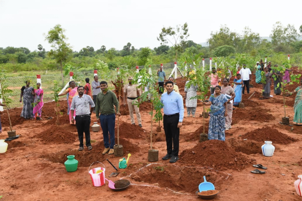 மரக்கன்றுகள் நடும் பணி. ஆட்சிய..