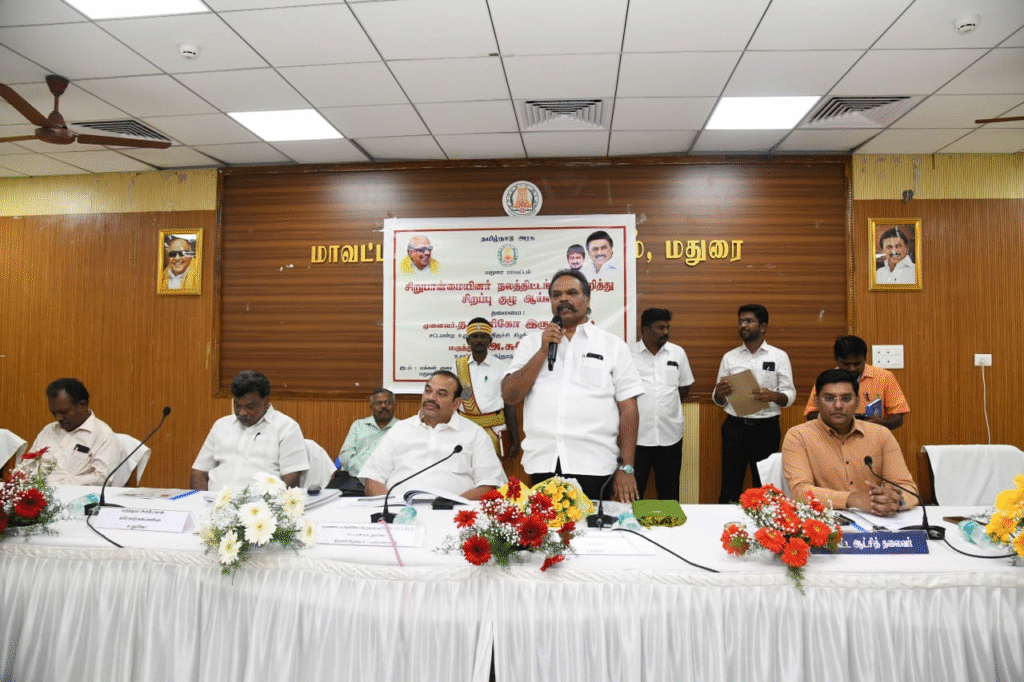 மதுரை: தமிழ்நாடு சிறுபான்மையினர் பொருளாதார மேம்பாட்டுக் கழகத்தின் தலைவர் திரு.சி.பெர்னான்டஸ் ரத்தின ராஜா, தமிழ்நாடு சிறுபான்மையினர் நலத்திட்ட சிறப்புக் குழுவின் உறுப்பினர்/திருச்சி கிழக்கு சட்டமன்ற உறுப்பினர் முனைவர் த.இனிகோ இருதயராஜ் மற்றும் ஆகியோர் தலைமையில் மாவட்ட ஆட்சித் தலைவர் கே.ஜே.பிரவீன் குமார் முன்னிலையில், மதுரை மாவட்ட ஆட்சியர் அலுவலக கூட்டரங்கில் பிற்படுத்தப்பட்டோர், மிகவும் பிற்படுத்தப்பட்டோர் மற்றும் சிறுபான்மையினர் நலத்துறை சார்பில் மதுரை மாவட்டத்தில், சிறுபான்மையினர் நலன் குறித்த கோரிக்கைகள் சிறுபான்மையினர் நலத்திட்டங்கள் செயலாக்கம் தொடர்பாக தொடர்பாக ஆய்வுக் கூட்டம் நடைபெற்றது.