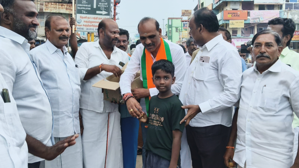 இதன் ஒரு பகுதியாக, மதுரை மாவட்டம், உசிலம்பட்டி தேவர் சிலை முன்பு பாஜக மதுரை பெருங்கோட்ட பொறப்பாளர் கதளி நரசிங்க பெருமாள் தலைமையிலான பாஜக நிர்வாகிகள் பட்டாசு வெடித்தும், இனிப்பு வழங்கியும் கொண்டாடி மகிழ்ந்தனர்.