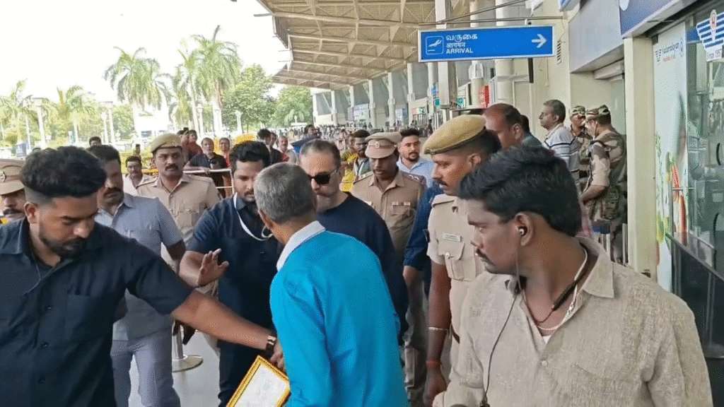 கொடைக்கானல் செல்வதற்காக மக்கள் நீதி மையம் தலைவரும் மக்களவை உறுப்பினருமான கமலஹாசன் சென்னையில் இருந்து மதுரை வந்தடைந்தார்.