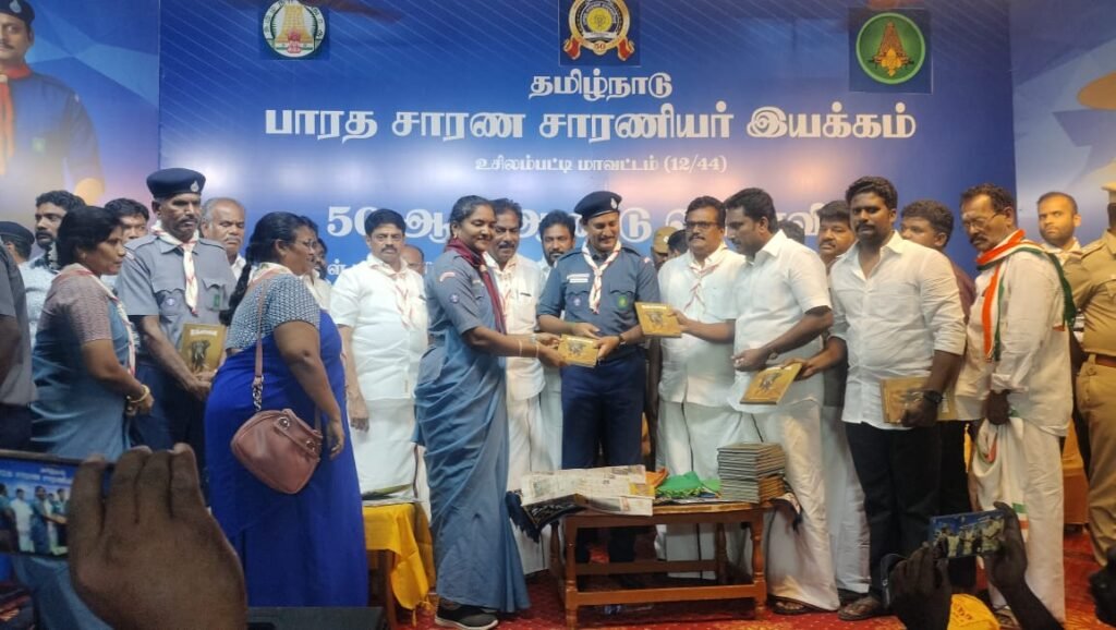 மதுரை மாவட்டம், உசிலம்பட்டி நாடார் சரஸ்வதி மேல் நிலைப்பள்ளியில் உசிலம்பட்டி சாரண சாரணியர் இயக்கத்தின் 50 வது ஆண்டு பொன்விழா – பள்ளி கல்வித்துறை அமைச்சர் அன்பில் மகேஸ் பொய்யாமொழி, பத்திரப் பதிவுத்துறை அமைச்சர் பி.மூர்த்தி, பள்ளிக் கல்வித்துறை இயக்குநர் கண்ணப்பன், உசிலம்பட்டி சார் ஆட்சியர் உட்கர்ஷ்குமார், தேனி நாடாளுமன்ற உறுப்பினர்கள் தங்க தமிழ்ச்செல்வன், சட்டமன்ற உறுப்பினர்கள் பூமிநாதன், வெங்கடேசன், அய்யப்பன் மற்றும் திமுக மதுரை தெற்கு மாவட்டச் செயலாளர் மணிமாறன் தலைமையில் திமுக நிர்வாகிகளும் பங்கேற்றனர்.