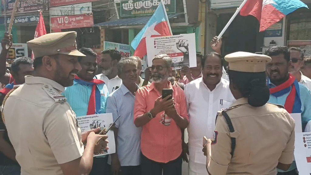 இந்த ஆர்ப்பாட்டத்தில் அண்ணா திராவிட மக்கள் முன்னேற்றக்கழக பொதுச்செயலாளர் பசும்பொன் பாண்டியன், விசிக மண்டல செயலாளர் மாலின், மாவட்ட செயலாளர் காளிமுத்து, மக்கள் அதிகாரம் நடராஜன் பல்வேறு அமைப்புகளை சார்ந்த 50க்கும் மேற்பட்டோர் கலந்து கொண்டனர்.