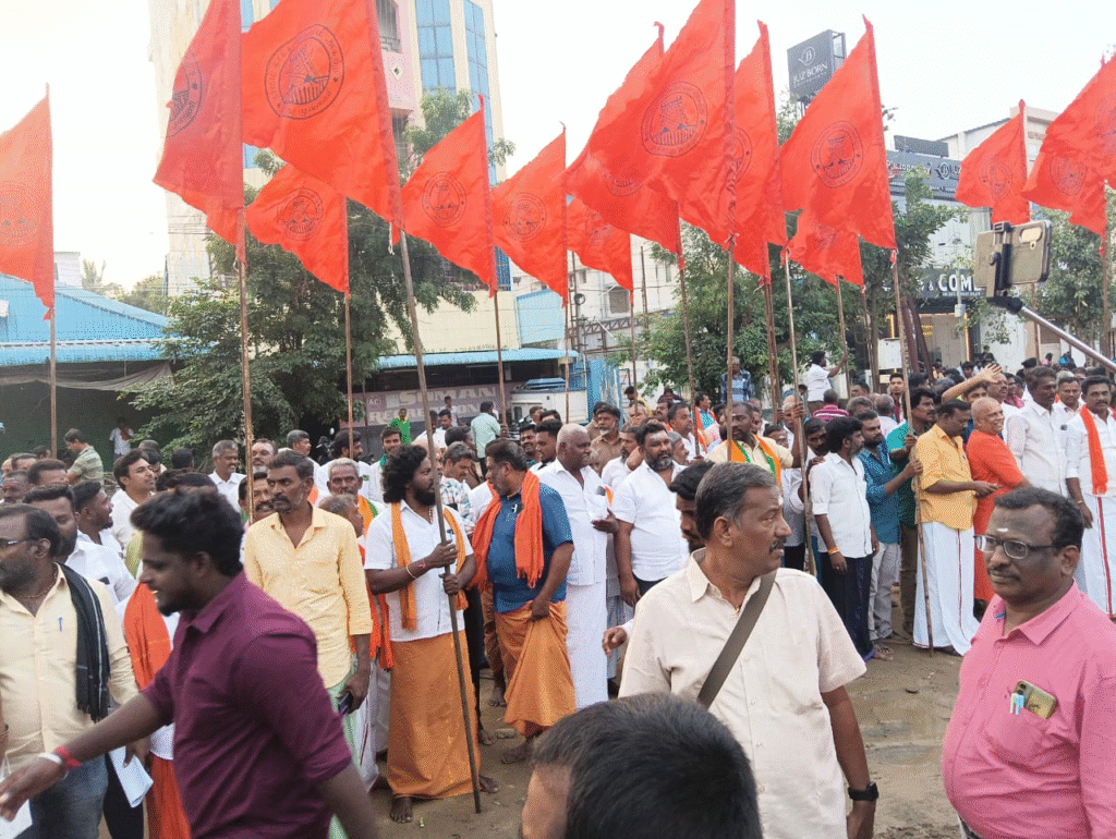 இந்த நிலையில், மதுரை பழங்காநத்தம் அருகே, ஆர்ப்பாட்டம் நடத்துவதற்காக இந்து இந்து முன்னணி தொண்டர்கள் குவிந்திருந்தனர்.