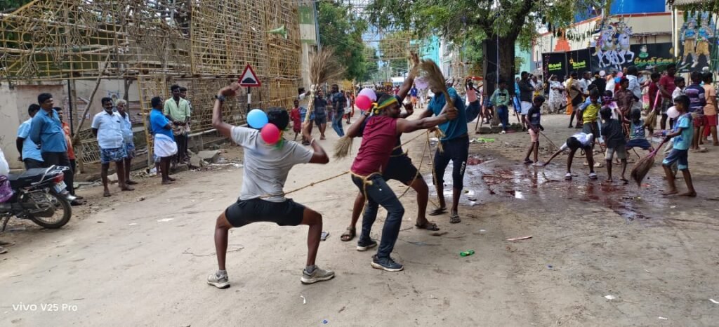 நிறைவு நாளில் மாமன், மைத்துனர்கள் ஒருவரை ஒருவர் துடைப்பத்தால் அடித்துக் கொள்ளும் நிகழ்ச்சி நடைபெறும்.