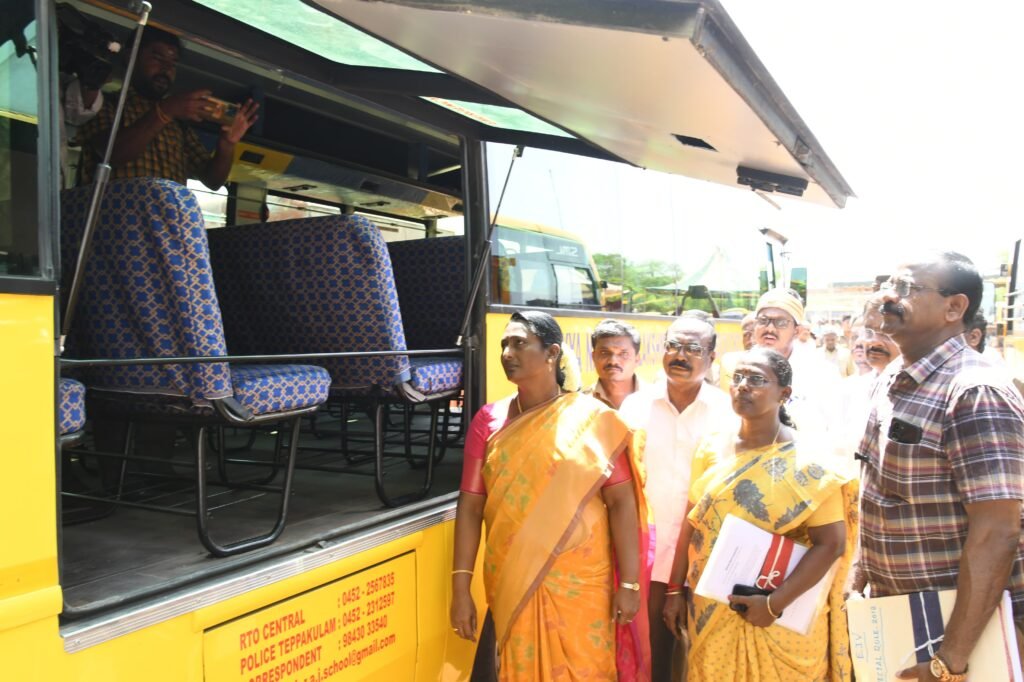 மதுரை காவல் ஆயுதப்படை மைதானத்தில் கோடை விடுமுறை முடிந்து பள்ளிகள் மீண்டும் திறக்கப்படவுள்ள நிலையில் மாணவ மாணவியர்களை ஏற்றிச் செல்லும் பள்ளி வாகனங்களின் நிலை குறித்த வருடாந்திர ஆய்வு ப்பணி மாவட்ட ஆட்சித் தலைவர் மா.சௌ.சங்கீதா, தலைமையில் நடைபெற்றது.