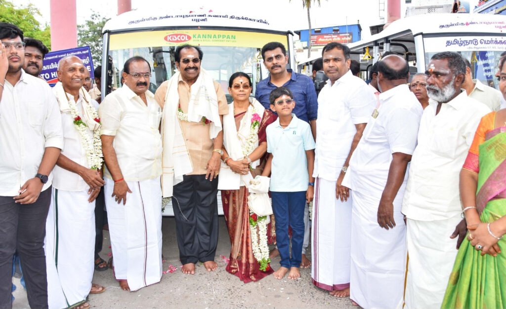 இந்நிலையில், கண்ணன் இரும்பு எஃகு நிறுவன(Kannappan iron and steel company pvt Ltd.. (Kiscol)) நிறுவனத்தின் உரிமையாளர் திரு.பி.எஸ்.டி.கண்ணப்பன் மற்றும் தமிழ்நாடு மெர்க்கண்டையல் வங்கி(Tamilnadu Mercantile Bank) மதுரை மண்டல துணை பொது மேலாளர் திரு.டி.கண்ணன் ஆகியோர் பக்தர்களின் வசதிக்காக 23 இருக்கைகள் கொண்ட மின்கல சிற்றுந்து தலா ஒன்று வீதம் இரண்டு வாகனங்களை திருக்கோயில் நிர்வாகத்திற்கு உபயமாக வழங்கியுள்ளனர். இந்த வாகனங்கள் இயக்கம் பக்தர்களின் பயன்பாட்டிற்காக மாண்புமிகு உணவு மற்றும் உணவுப்பொருள் வழங்கல் துறை அமைச்சர் திரு.அர.சக்கரபாணி அவர்களால் இன்று தொடங்கி வைக்கப்பட்டுள்ளன. இதன்மூலம் கிரிவீதியில் பக்தர்களின் வசதிக்காக கட்டணமில்லாமல் பயன்படுத்தப்படும் வாகனங்களின் எண்ணிக்கை 31 ஆக உயர்ந்துள்ளது.