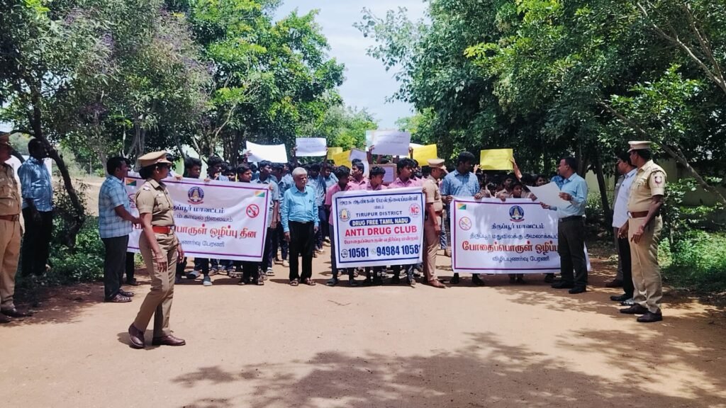 போதைப் பாதை அழிவின் பாதை! ரோடு ரோடா கோஷம் போடும் மாணவர்கள்! காவல் ஆய்வாளர் தலைமையில் ஊர்வலம்.