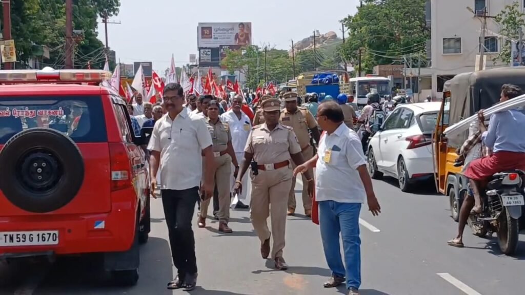 இதில், விலைவாசி உயர்வை கட்டுப்படுத்து. பொதுத் துறை நிறுவனங்களை தனியாருக்கு தாரை வார்க்காதே. தொழிலாளருக்கு விரோதமான நான்கு சட்ட தொகுப்பை திரும்ப பெறு .