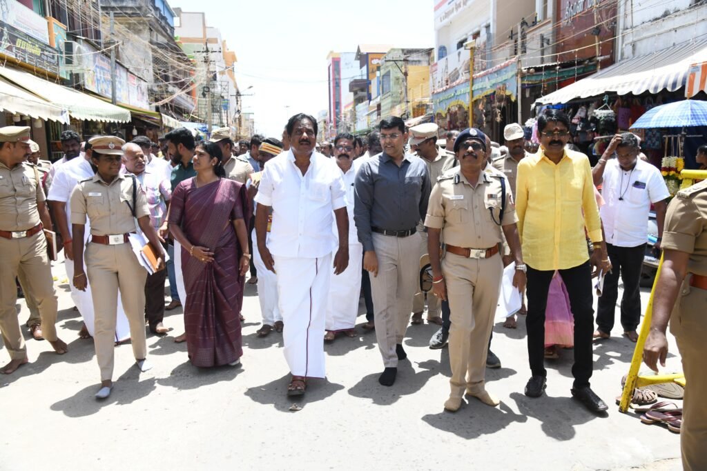 தமிழக வணிகவரி மற்றும் பதிவுத்துறை அமைச்சர் பி மூர்த்தி, மதுரை மாவட்டம், திருப்பரங்குன்றம் அருள்மிகு சுப்பிரமணிய சுவாமி திருக்கோயில் கும்பாபிஷேகம் நடைபெறுவதை முன்னிட்டு முன்னேற்பாடு பணி மற்றும் பாதுகாப்பு பணிகள், கும்பாபிஷேகம் அன்று பொதுமக்கள் மீது புனித நீர் தெளிக்கப்படுவது குறித்து முன்னோட்டப் பணிகளை ஆய்வு மேற்கொண்டார்.