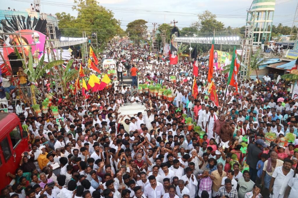 அவருக்கு , முளைப்பாரி யுடன் ஏராளமான பெண்கள் வரிசையாக நின்று உற்சாக வரவேற்பு கொடுத்தனர். அதை ஏற்றுக் கொண்டு, மக்கள் வெள்ளத்தில நடுவே எடப்பாடி பழனிச்சாமி தி.மு.க., ஆட்சியின் அவல நிலை பற்றியும் அ.தி.மு.க ஆட்சி காலத்தில் செயல்படுத்தப் பட்ட திட்டங்கள் பற்றி விளக்கி பேசினார்.